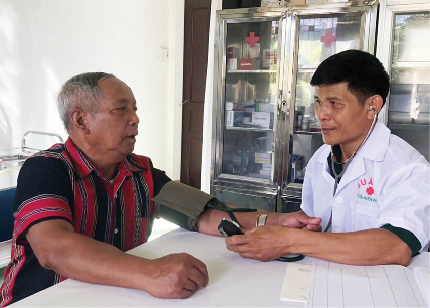 “Ngày trước, đồng bào dân tộc thiểu số mỗi khi đau ốm vẫn còn chữa bệnh theo phong tục tập quán cũ, như làm lễ cúng hoặc lên rừng, lên rẫy đào rễ cây, hái lá về sắc uống, đắp vết thương. Chúng tôi cùng chính quyền các cấp, kết hợp với các già làng, trưởng bản, những người có uy tín trong các bản làng thường xuyên đi tuyên truyền, vận động bà con bỏ các hủ tục, tuyên truyền cho họ cách phòng bệnh tật, biết chăm sóc sức khỏe, giữ gìn vệ sinh thôn bản, kế hoạch hóa gia đình… Bây giờ, mỗi tháng Trạm xá quân, dân y kết hợp của xã khám, chữa bệnh vài trăm lượt người”, Thiếu tá Phước chia sẻ.