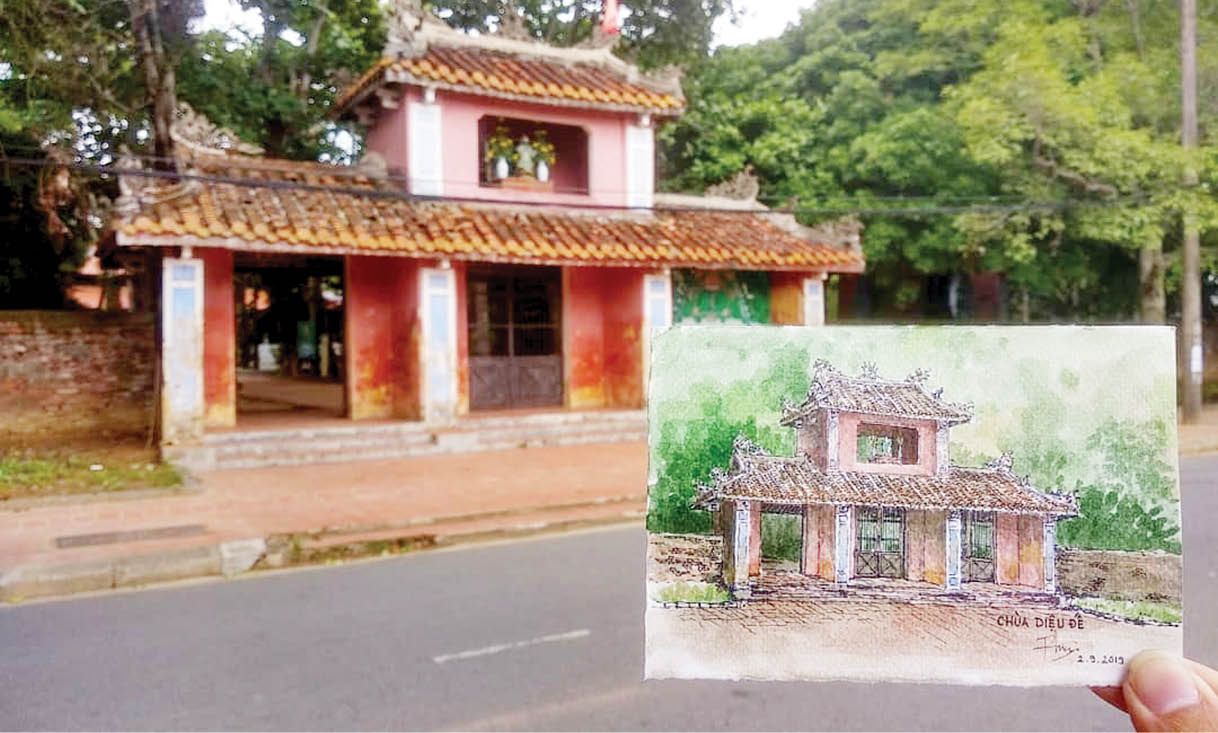 Chùa Diệu Đế được kiến trúc sư trẻ ghi chép thông qua tranh ký họa