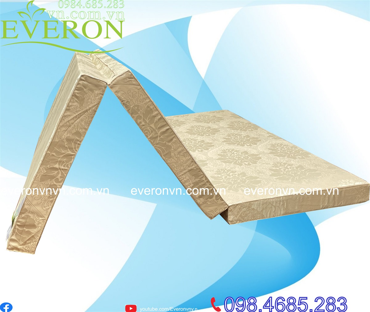 - Đệm bông ép Everon 4.0 có kết cấu gập đôi khá thuận tiện cho việc di chuyển, thay tháo và vệ sinh sản phẩm