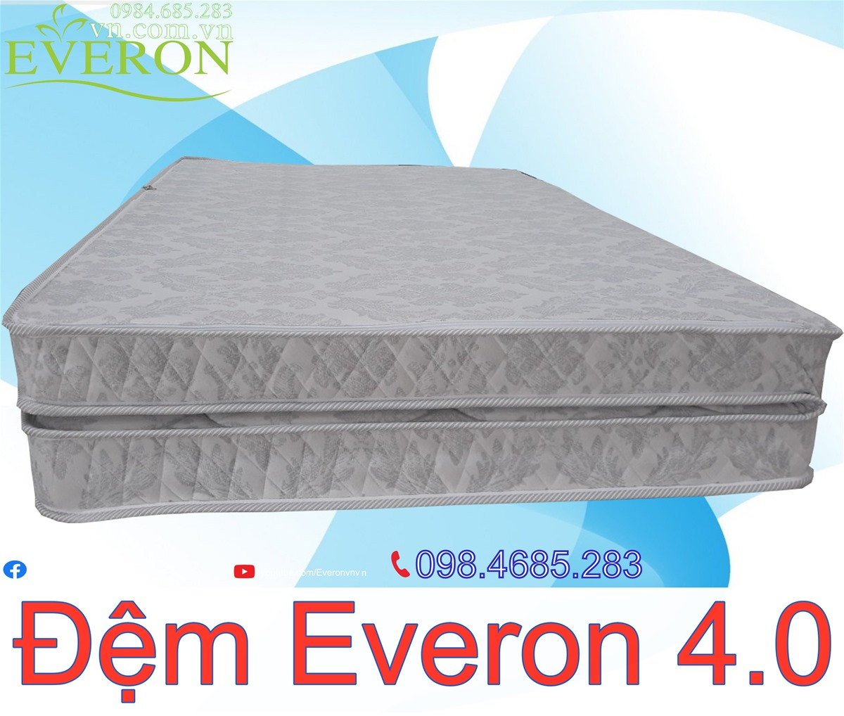 - Đệm bông ép Everon 4.0 được tăng cường thêm độ chắc chắn của kết cấu đệm nhằm tạo ra sự liên kết chặt chẽ cũng như hạn chế xẹp lún, gia tăng tuổi thọ của đệm