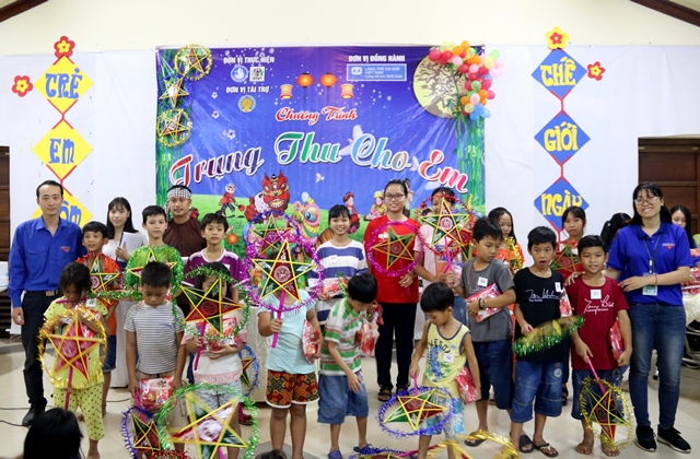 Tại đây, đoàn viên, sinh viên các đơn vị đã tổ chức trò chơi giao lưu, hoạt động vẽ tranh, đố vui có thưởng, đồng thời tặng 55 phần quà trung thu (gồm bánh kẹo, sữa, đèn ông sao, vở…) cho các em nhỏ.