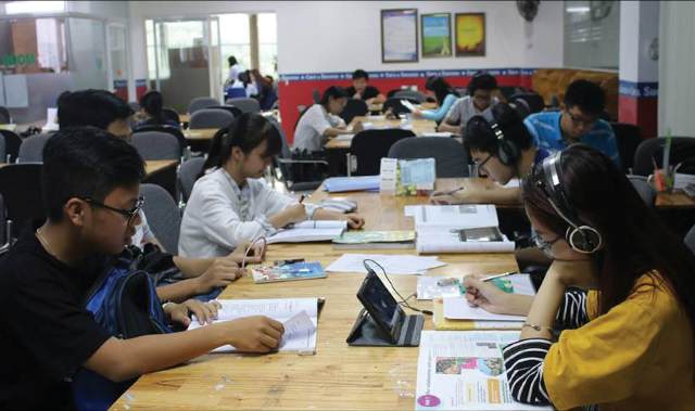 Hầu khắp một gian phòng rộng là rất nhiều bạn trẻ cắm cúi tự học. Ảnh: Học viện Anh Ngữ AMA