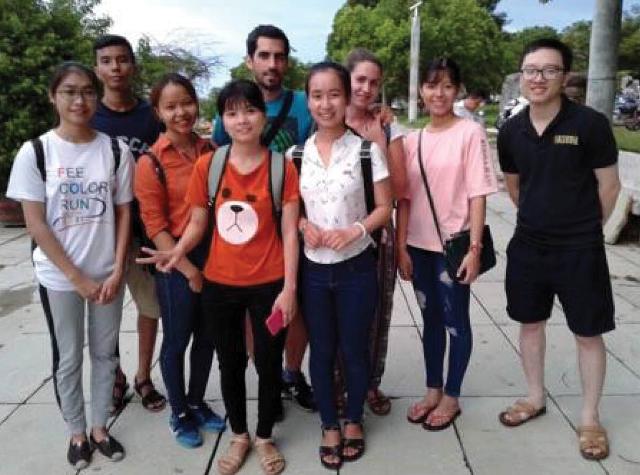 Nhiều bạn vẫn chọn dạo quanh các khu phố tây, đường đi bộ để bắt chuyện với khách nước ngoài. Ảnh: Hani