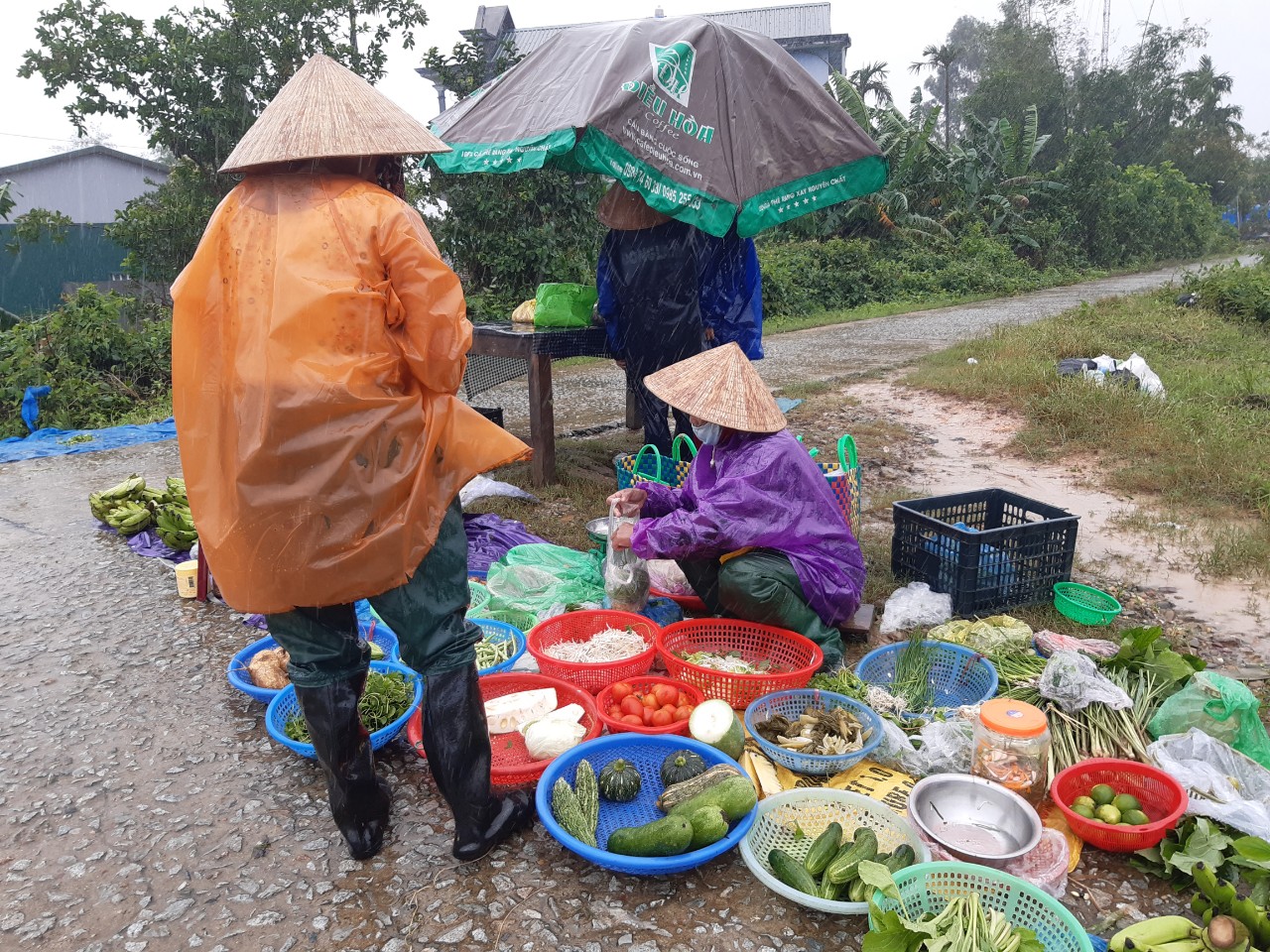 "Chợ" vẫn họp, mua bán nông sản ngày mưa lũ ở Quảng Điền