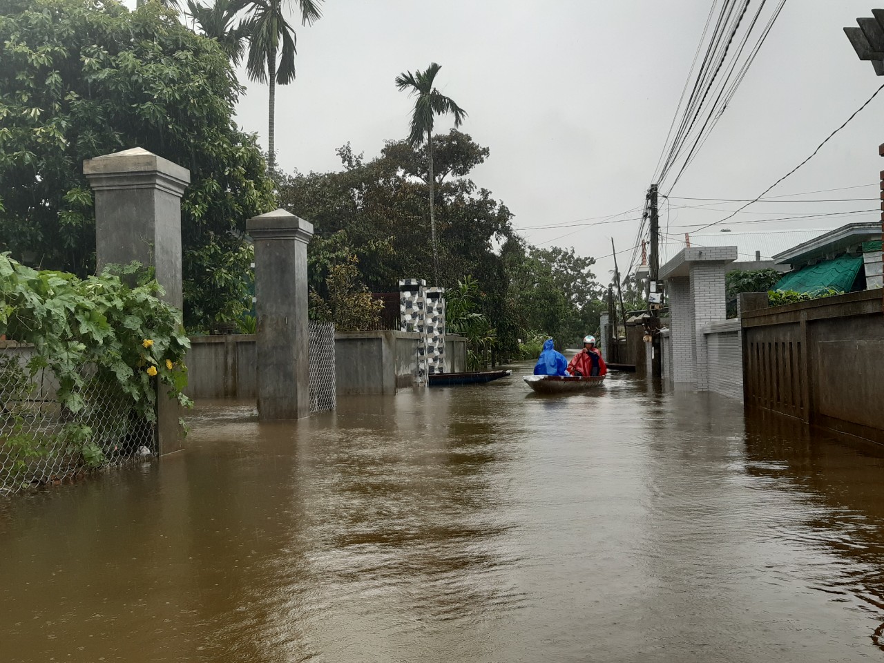 Tại thôn Xuân Tùy, xã Quảng Phú, Quảng Điền, mưa lớn cộng với thủy điện Hương Điền điều tiết nước khiến mực nước rút chậm. Đến trưa nay (23/10), nước lũ ở thôn Xuân Tùy tiếp tục tăng chậm. Nước lũ ngập từ 0,5m - 1m. Người dân phải dùng ghe thuyền để đi lại. Anh Phạm Văn Hà, Trưởng thôn Xuân Tùy, cho hay: “Xuân Tùy là một vùng quê thấp trũng, nằm ven triền đê Nghĩa Lộ - Nam Phù nên hằng năm lũ trên thượng nguồn về khiến ngôi làng bị ảnh hưởng rất lớn, có nhà ngập rất sâu. Bà con ở đây gặp khó khăn trong việc làm ăn, đi lại...”.