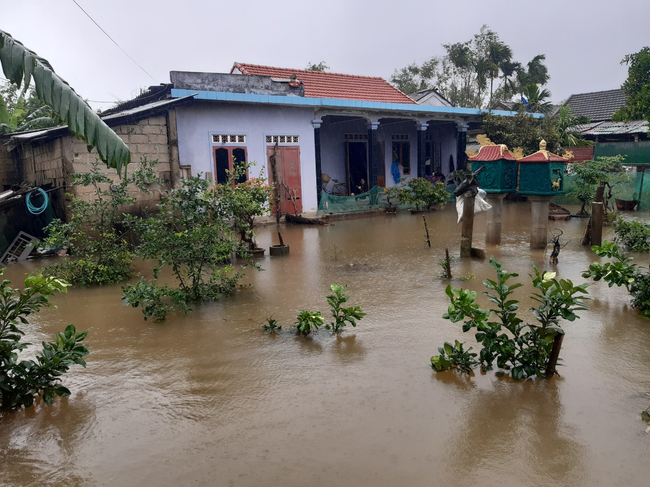 Trưa 23/10, nước đã tràn vào sân nhà dân ở Xuân Tùy