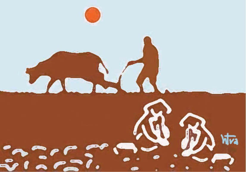 Khác với không khí làm đồng hối hả vì phải chạy đua cùng mặt trời vào dịp hè, mùa làm đất, gieo hạt những ngày trước tết thong dong hơn. Hầu như không ai tính ngày, tính buổi mà chỉ tính theo đầu việc. Trong tiết trời có nắng nhưng hơi se lạnh, mọi người thong thả xới xáo đất đai, rắc xuống những đường cày thẳng băng như đường chỉ kẻ từng hạt lạc giống đỏ hồng. Cuối ngày, toàn bộ cánh đồng được lấp đất mới, trải ra thành một mặt phẳng ngút ngàn đến nỗi không thấy được đường biên.