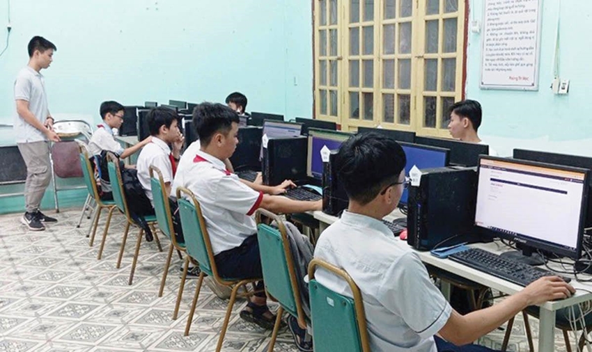 | Các em THCS làm bài thi trên website QHHOJ tại kỳ thi Tin học trẻ Thừa Thiên Huế 2024 |
