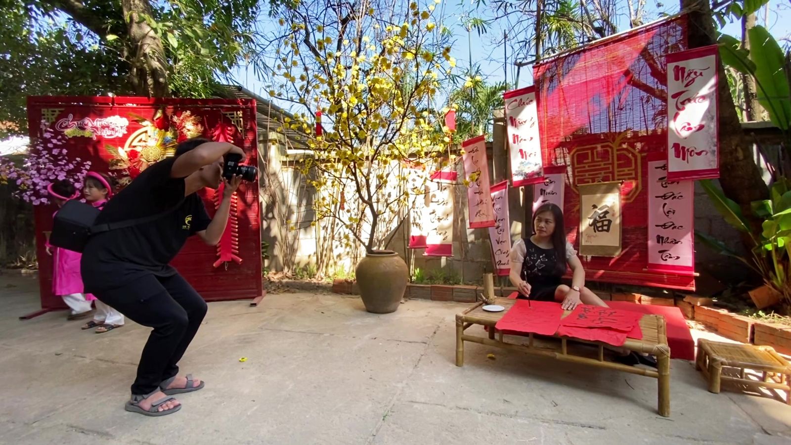 Mải mê chụp những bức ảnh đệp cho gia đình, anh Đặng Thanh Kim Vũ, Việt kiều Hàn Quốc chia sẻ: “Đã 11 năm mình mới có dịp gặp lại những quang cảnh này. Mình rất xúc động vì những hình ảnh gắn với bao ký ức tuổi thơ được tái hiện một cách chân thực và gần gũi. Chính những concept này đã níu chân mình, cho mình và gia đình nhỏ trở về với tết xưa hoài niệm, với cảm giác ấm cúng, sum vầy”.
