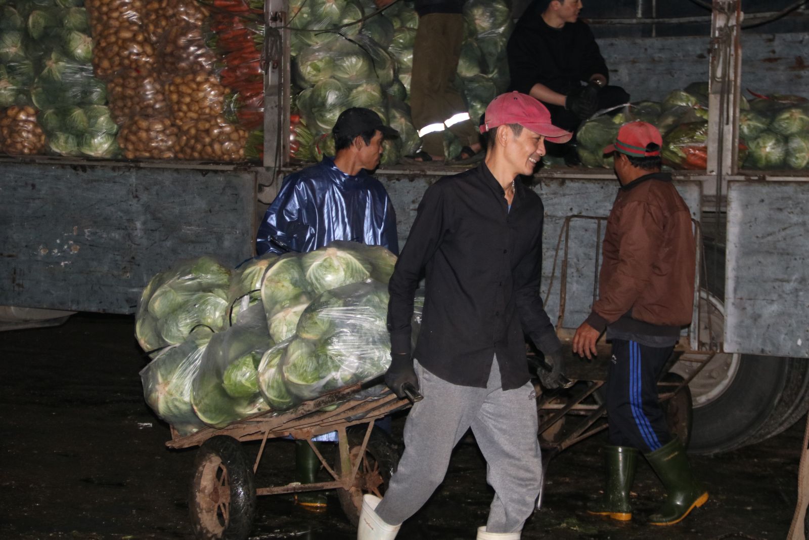 5 giờ chiều ngày 28 Tết (19/1), anh Hồ Văn Tưởng (37 tuổi, quê ở xã Phú An, huyện Phú Vang) đã xong bữa cơm để lên xe ra chợ đầu mối Phú Hậu, bắt đầu hành trình cho một đêm mưu sinh giáp Tết bằng nghề bốc vác hàng hoá.