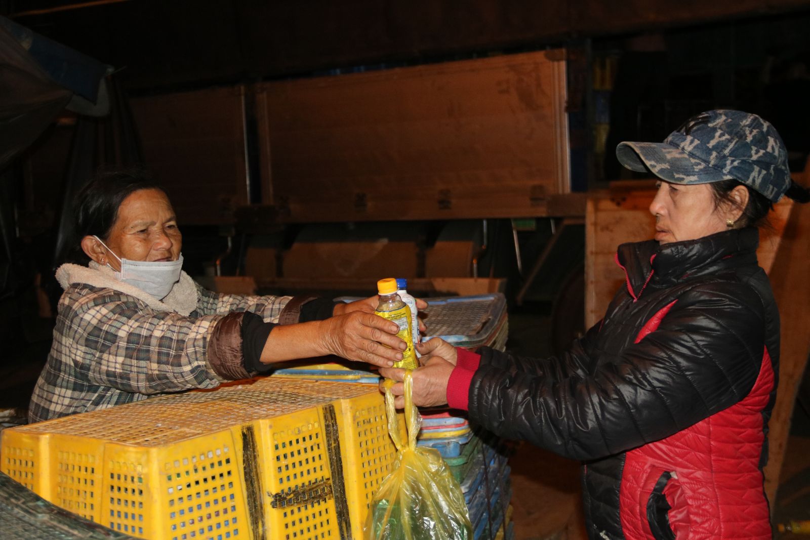 Mệ Nguyễn Thị Bưởi, 74 tuổi kể: “Tui có 7 đứa con, cũng quanh quẩn làm thuê làm mướn ở chợ đầu mối này. Nghĩ mình còn sức, còn phụ con được, thế là ra chợ bán nước ngọt kiếm thêm đôi đồng. Chợ đầu mối ngày gần Tết làm việc xuyên đêm, tui cũng thức theo đến sáng, mỗi đêm kiếm được vài chục ngàn”.