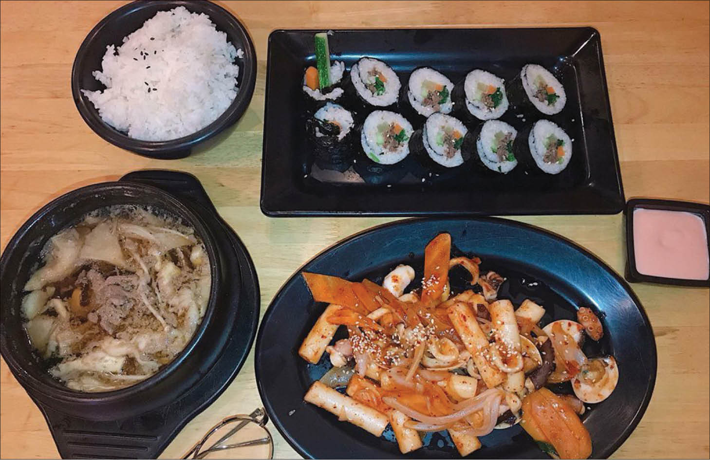 Vì được bán với giá khả phải chăng, từ 1.000 đồng đến trên dưới 45.000 đồng cho mỗi loại nên dù có thể dễ dàng tự làm ở nhà, nhưng đến quán chọn và thưởng thức ngay tại chỗ vẫn là hình thức được ưu tiên hơn cả. Với chỉ khoảng 100.000 – 150.000 đồng, một nhóm bạn 2,3 người có thể có đến hơn chục cuộn cơm nhỏ mang kiểu Hàn, Nhật đủ cả, cộng thêm hai, ba dĩa nướng cay là ăn no căng bụng. Dạo này trở trời, lúc nắng lúc mưa nên thú vui ăn kiểu này là lớp trẻ hợp nhất. Thành ra ngày trước đi đợi ăn mì cay thế nào, giờ đợi ăn thịt nướng, bánh gạo lắm lúc cũng y như vậy. Ở một vài quán ruột, nhiều khi đã có chỗ ngồi yên vị nhưng vài bạn cũng phải ngậm ngùi bỏ đi vì sốt ruột.