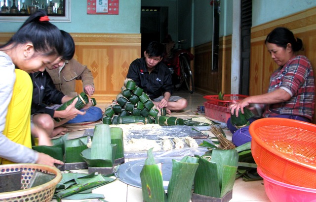 Người dân vùng Ngũ Điền cùng nhau gói bánh chưng, bánh tét đón tết