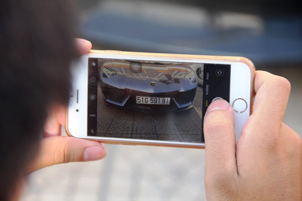 Một người tranh thủ chụp lại đầu chiếc xe siêu sang
