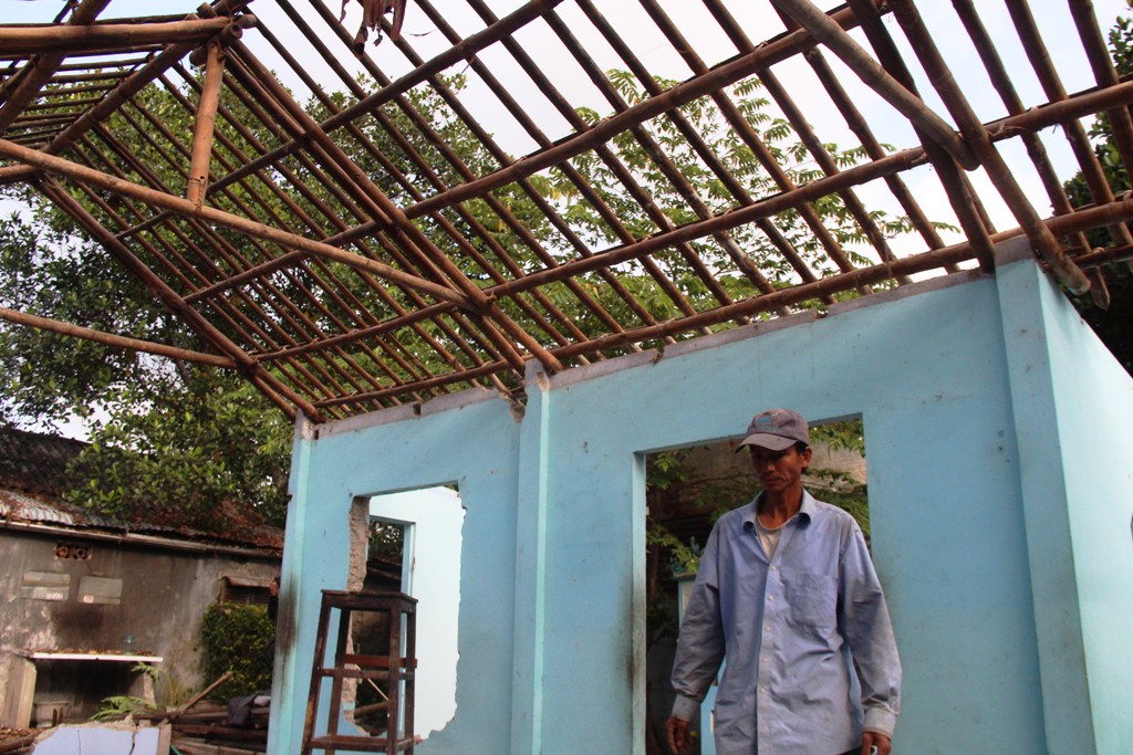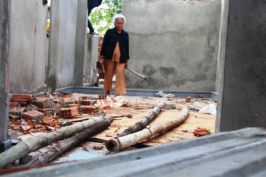 Một cụ bà tranh thủ nhặt những vật dụng còn lại bên trong ngôi nhà chuẩn bị bị hạ giải