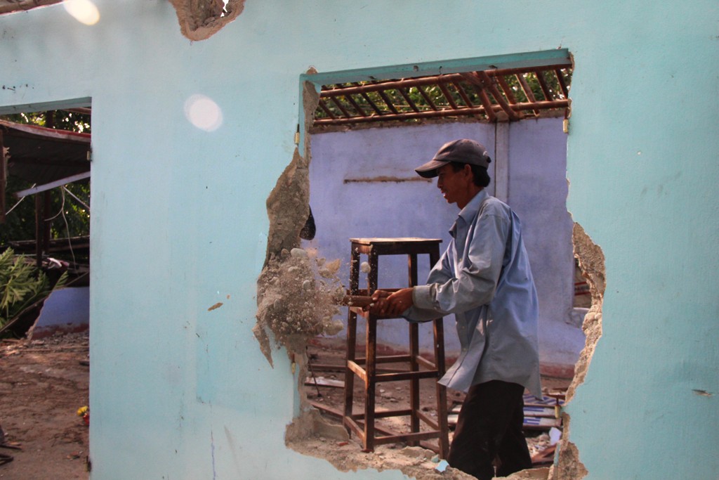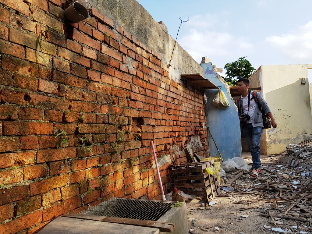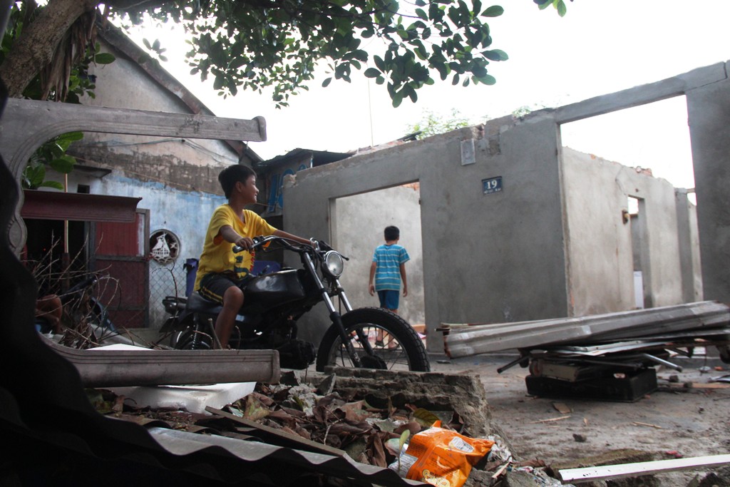 Sau khi di dời ra khỏi vật dụng, người dân tiến hành đập bỏ các bức tường nhà để trả lại mặt bằng