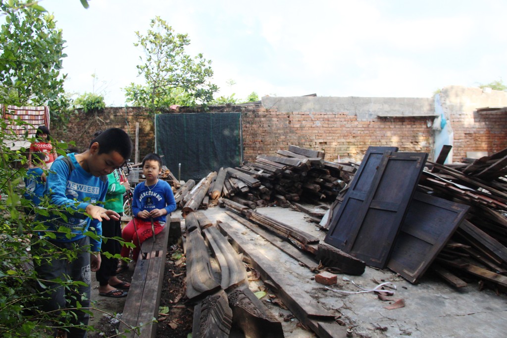 Những đống gỗ được chất thành đống sau khi hạ giải. Và những đứa trẻ vẫn vô tư, hồn nhiên vui đùa trước khi theo gia đình chuyển đi nơi khác