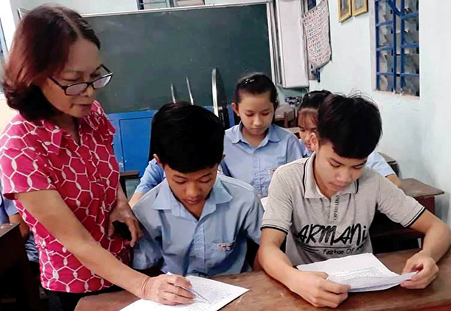Mẹ Dương tận tình dạy dỗ các con em. Ảnh: Trần Văn Toản