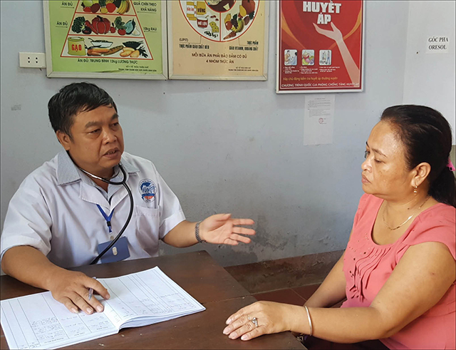 Y sĩ Nguyễn Quốc Linh khám, tư vấn bệnh tăng huyết áp cho người dân địa phương