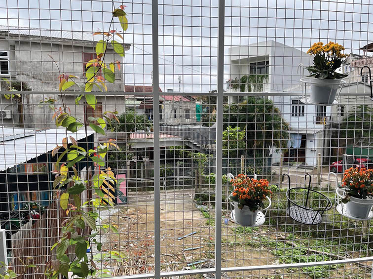 Sân trước có cá và có hoa