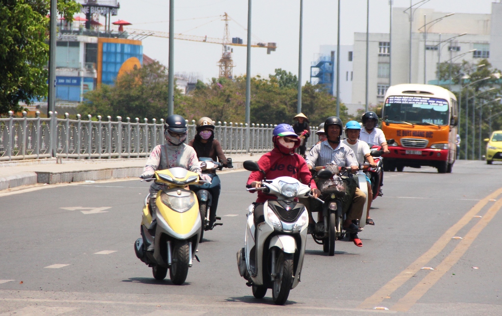 Ghi nhận vào trưa 20/4, nắng nóng có lúc lên đến 39-40 độ C ở bên ngoài trời. Người đi đường gần như bịt kín thân thể để tránh bị sốc nhiệt