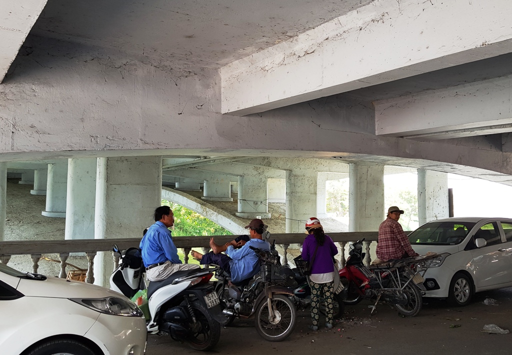 Trong khi đó với một vài người lao công, giờ nghỉ trưa của họ gần như không có cách nào khác là dưới những bóng mát, cây xanh của công viên hoặc ngay tại một số gầm cầu. Trên đường phố, gần như vắng bóng xe cộ qua lại so với mọi ngày.