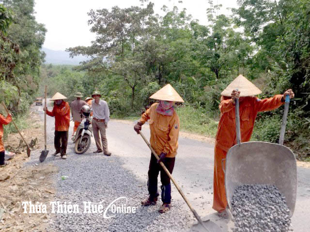 Theo chân một đốc công, tôi đến đoạn đường lên A Lưới từ km 25 đến km 78 đang được Công ty TNHH MTV Xây dựng công trình 2 sửa chữa, gia cố. Hơn 10 công nhân đang chuyển những xe đá dăm rải lên những đoạn đường được làm sạch dài gần 300 mét. Anh Nguyễn Đăng Thanh, quản lý công trình cho biết, sở dĩ hôm nay công nhân không nhiều vì thời tiết còn âm u nên chưa dám nấu nhựa mà chỉ tranh thủ rải đá. Qua câu chuyện của anh thì việc xúc, đẩy những xe đá dăm xem ra có vẻ nhẹ nhàng với họ. Một nữ công nhân đầu đội nón lá, mặt bịt khẩu trang kín kể: “Hôm nào trời có giông, dù buổi trưa nắng đến mấy cũng phải tăng ca để kịp rải nhựa trước khi trời mưa”. Công trình của họ là những tuyến đường chạy dài khắp nơi, có khi là những đoạn quốc lộ rộng thênh thang, lưu lượng xe cộ lưu thông liên tục khiến mọi người càng chịu nhiều áp lực. Không ít trường hợp công nhân ngất xỉu khi đang làm việc do say nắng, cảm nắng. Ở những tuyến đường hoang vắng, xa khu vực dân sinh, hay những tuyến giao thông nông thôn… đội quản lý yêu cầu họ sống tập trung trong lán trại dựng tạm. Điều kiện sống thiếu thốn nhiều thứ, thiếu điện đã đành, thiếu nước sinh hoạt lại càng khổ hơn, có khi phải lấy nước từ khe suối không đảm bảo vệ sinh để nấu nướng. Đối với công nhân nam đã không dễ dàng gì, phụ nữ càng vất vả hơn. Chị Nguyễn Thị Mùi, ở phường Trường An, một mình nuôi hai con nhỏ, mỗi lần theo công trình phải gửi con cho họ hàng, chị thở dài: “Gần con không tìm được việc, không đủ ăn cũng khổ, đi xa thường xuyên không quản lý được con cũng khổ. Thôi thì sức mình lo được đến đâu thì lo”. Như thế chưa đủ, hàng đêm họ còn phải đối diện với nguy cơ bị côn trùng như rắn, rết, nhện, chuột, vắt… cắn. Anh Nguyễn Văn Nguyện, công nhân đang thi công tại tuyến đường giao thông nông thôn ở xã Hồng Thủy (A Lưới) cho biết, anh từng bị rết cắn, bắp chân sưng tấy suốt mấy ngày. Những lần như thế rất sợ, nhưng công việc này đang giúp anh phụ vợ nuôi các con nên không thể bỏ việc.
