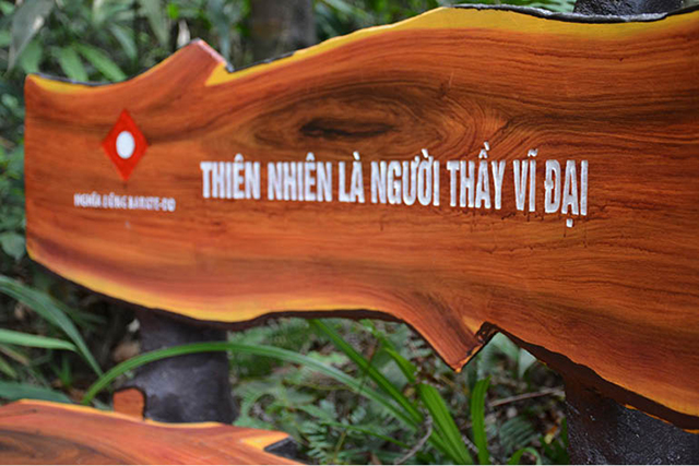 Khác với những lần trước, lên Bạch Mã lần này tôi phát hiện ra tại đầu lối rẽ từ con lộ chính dẫn vào thác Đỗ Quyên xuất hiện một cụm nhà vệ sinh 4 ngăn. Rồi dọc theo các con đường mòn dẫn vào thác, lên Vọng Hải Đài… thỉnh thoảng lại bắt gặp những chiếc ghế đá được chế tác giả hình cây gỗ, lịch sự, thân thiện cho khách nghỉ chân; trên lưng ghế là những slogan, những châm ngôn, những lời kêu gọi hết sức dễ thương: “Có những lúc ta vội vàng/ Bỏ quên những thảm cỏ xanh bên mình!”; “Hãy giữ xanh, sạch, đẹp Bạch Mã!”; “Chúng ta nợ rừng một niệm ân!”; “Thiên nhiên là người thầy vĩ đại!”; “Hãy tĩnh tâm để lắng nghe hơi thở của rừng”… Tất cả đều là quà tặng của võ đường Nghĩa Dũng Karate-Do.