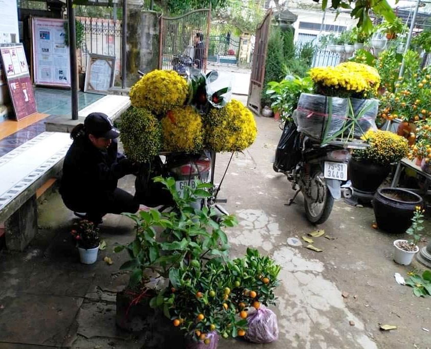Đang đợi sẵn ở một cửa hàng hoa trên đường Phạm Văn Đồng để chở hoa cho khách, ông Nguyễn Văn Trường (Phú Thượng, Phú Vang), làm nghề xe thồ cho biết: “Cứ mỗi năm vào dip cận tết, tôi lại ra các cửa hàng hoa để “kiếm cơm”. Mới 20 tết nhưng mỗi ngày tôi đã chở hơn chục chuyến. Có chuyến xa, chuyến gần, giá cả tùy tâm khách hàng. Nhưng được giúp người mua hoa chở về nhà, tôi cũng thấy vui lây, nghe không khí xuân ngập tràn. Không những chở hoa để lấy tiền, mà tôi còn “kiêm” luôn bốc vác, sẵn lòng giúp khách bê chậu, đặt hoa ở những vị trí thích hợp trong nhà”, ông Trường bộc bạch.
