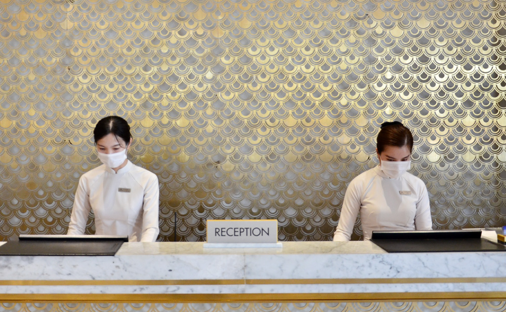 Những lễ tân khách sạn thường phải làm việc "xuyên tết". Ảnh Đức Quang