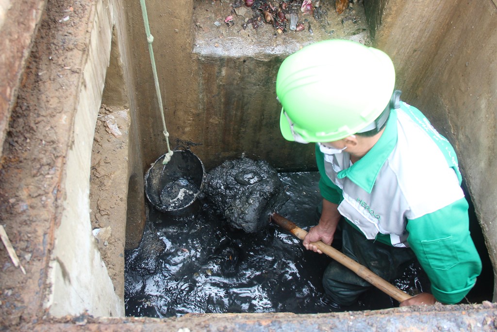 Ông Xuân lần lượt gom rác, xúc đất đá vào thùng nhôm. Cứ đầy thùng, người công nhân già cội này ra tín hiệu để đồng nghiệp phía bên trên dùng dây thừng kéo lên, chuyển qua cho công nhân khác đổ vào chiếc xe thùng cỡ nhỏ. Hết thùng này đến thùng khác, đầy xe thùng công nhân sẽ kéo ra khu vực tập kết. Không kể đất đá tụ thành đống, rất nhiều rác thải khác từ bao ni lông, chai nhựa, mảnh sành, xác chết động vật, bỉm trẻ em… là những gì mà các công nhân phải đối mặt, xử lý trong quá trình thông cống. “Có bữa gặp con gà chết, bữa thì kim tiêm la liệt. Nhưng rồi cũng quen, xử lý từ từ hết”, ông Xuân kể. Người đàn ông 57 tuổi này nói rằng, mình có hơn 20 năm gắn bó với nghề.