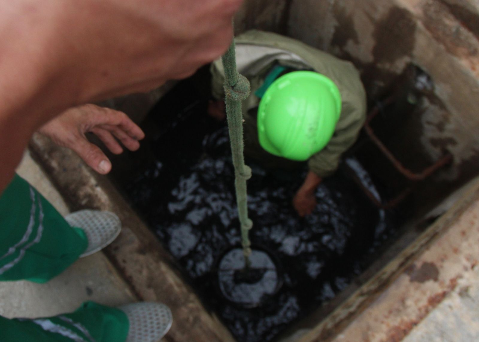 Ở mỗi nắp cống, một công nhân sẽ mang bộ đồ bảo hộ leo xuống phía dưới miệng cống sâu chừng 2m, có nơi sâu hơn. Theo nguyên tắc, sau khi nắp cống bật lên, phải để mùi hôi toả một hồi để các loại khí độc ở bên dưới thông đi người công nhân mới được xuống dưới.