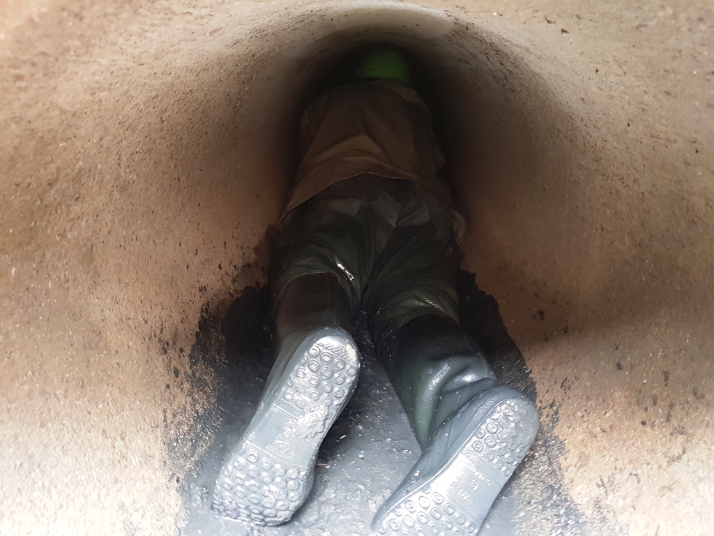 Không chỉ xử lý rác thải ở các miệng cống, các công nhân còn phải chui sâu vào các cống nối từ miệng này đến miệng kia để xử lý rất nhiều loại rác thải bám chặt.