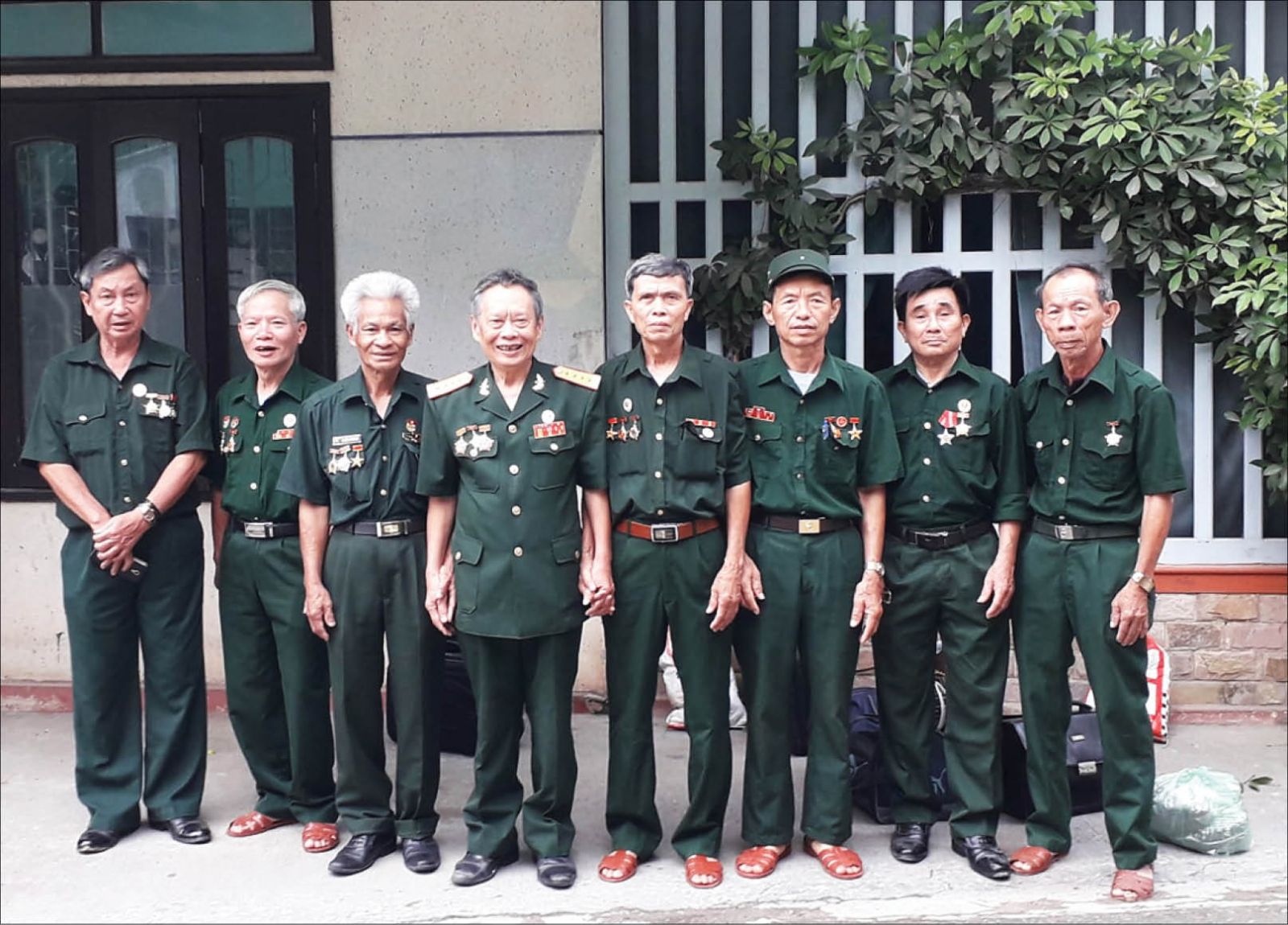 Cựu chiến binh Nguyễn Đức Thuận (thứ 4 từ trái sang) bên những người bạn chiến đấu năm xưa