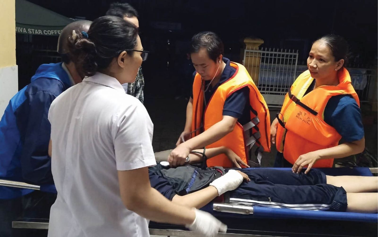 Nước trên đường ngập ngang bụng người. Các y, bác sĩ Ngô Viết Tiến, La Thành Nhơn, Nguyễn Thị Thủy, Nguyễn Thị Hoài Thương tìm men theo những lối nước thấp hơn, lội vào TYT, cấp cứu ban đầu, sau đó cùng lực lượng y tế và cán bộ xã, đưa sản phụ lên đò, di chuyển ra xe. Khi sản phụ vừa được tiếp nhận an toàn tại Bệnh viện Trung ương Huế, là lúc trời đã tối mịt. Các anh chị lúc này mới thấm cái lạnh và đói.