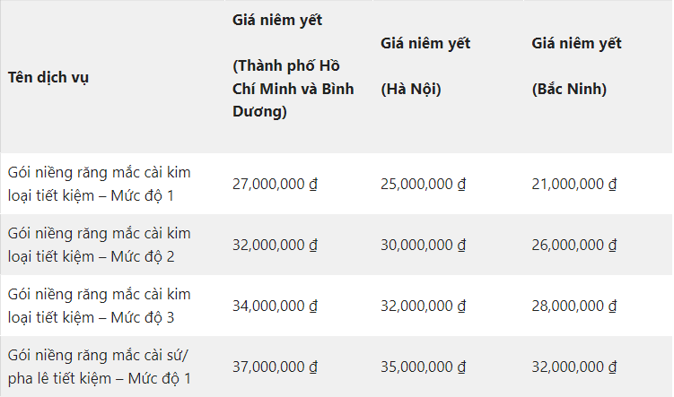 Tham khảo bảng giá niềng răng trả góp