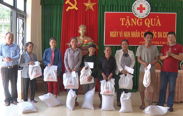 Tặng quà nạn nhân chất độc da cam ở A Lưới. Ảnh: HỮU PHÚC