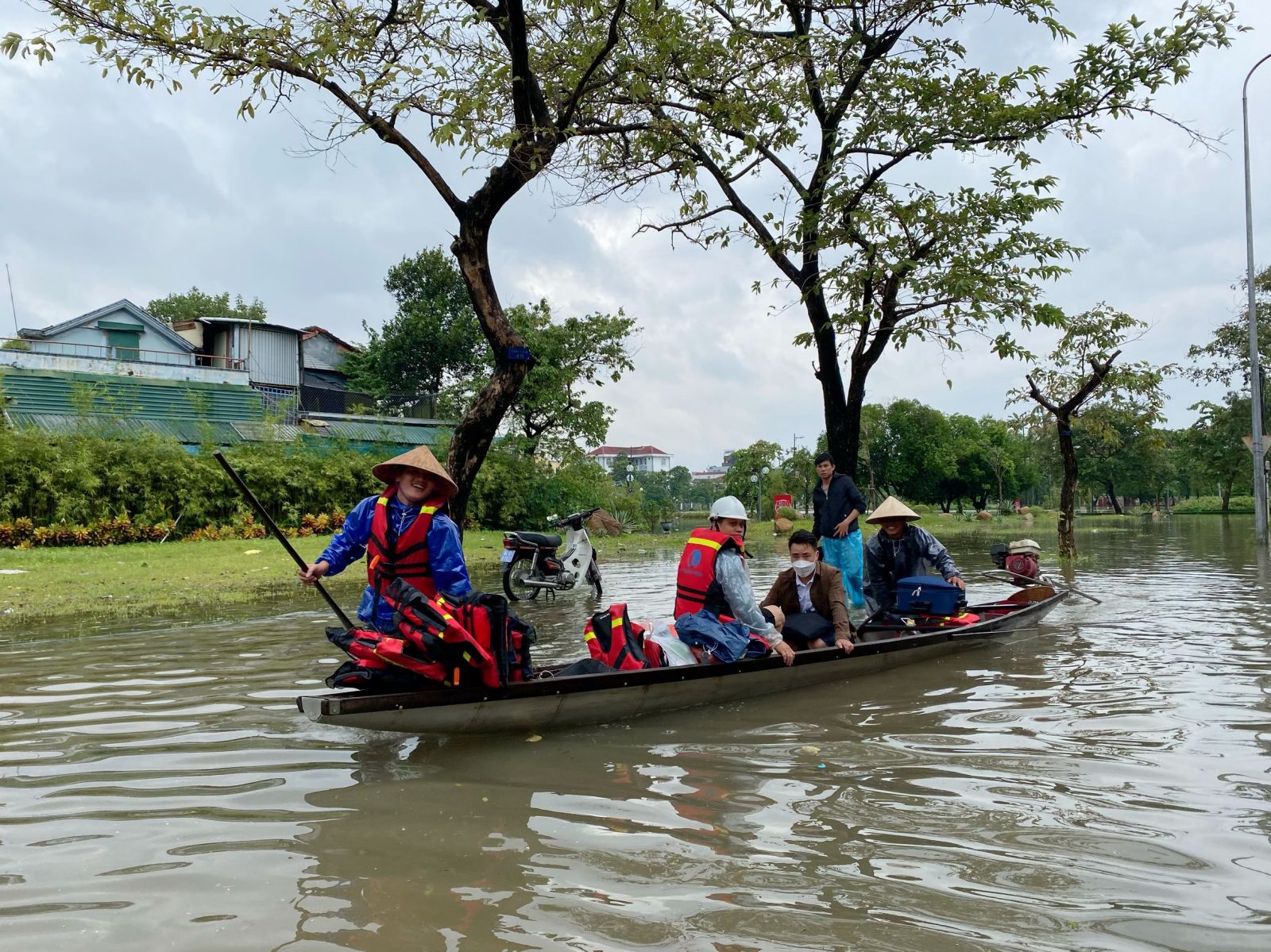 “Chuyến đò này lấy giá bao nhiêu vậy em?”. “Hai trăm nghìn chị ơi”- Người thanh niên chở đò cười bảo, hôm qua nước ngập nhiều đường hơn, ngập sâu hơn nên kiếm cũng được khá hơn. Lại bảo, linh động mưu sinh ngày lũ lụt, kiếm được tiền là vui rồi, và lại còn thêm một niềm vui khác. “Đời đò” vốn lênh đênh trên sông nước, đầm phá, chỉ những mùa lũ lụt, mới có cơ hội ngược xuôi ngay trên đường phố. Khách đi đò vui tính góp chuyện: “Mà như tui, chắc cũng có không ít khách cũng vui, vì “vụ” đi đò nơi phố xá. Nên đôi khi cũng chẳng tính toán chi li, so sánh với giá xe “ôm”, grab. Vả lại, những lúc ngập lụt như này, may mà có đò làm phương tiện vận chuyển, thuận tiện cho lưu thông đi lại”.
