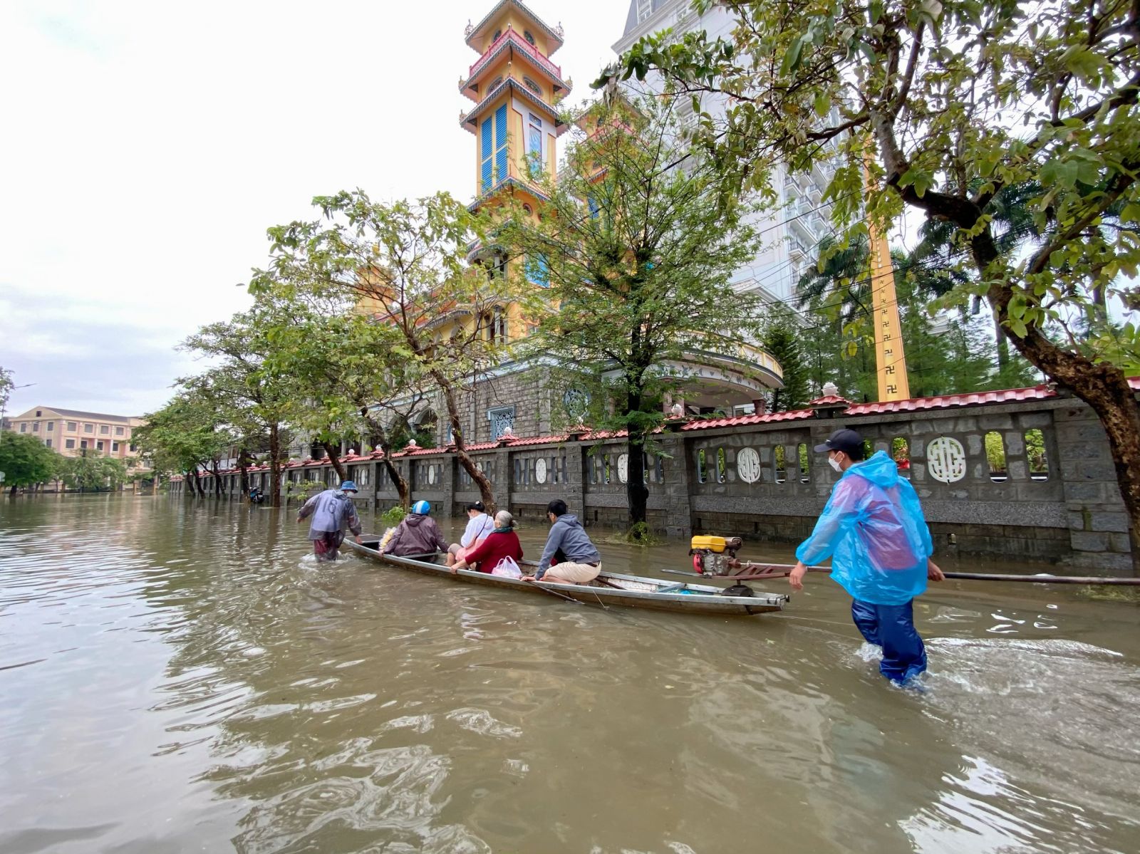 Trong lúc đó tầm 10 giờ sáng, trên lề đường Bà Triệu (cắt đường Dương Văn An) một số người đang đứng đợi đò. Không bao lâu sau, một chiếc đò đã xuất hiện từ phía xa tới. Chở đò là người đàn ông và người phụ nữ trung niên, sử dụng chèo tay. Khi “trả” khách, cũng là lúc vợ chồng chị vui vẻ góp câu chuyện phiếm. Người phụ nữ cho biết, nhà chị ở phường Vỹ Dạ, mưu sinh bằng nghề chài lưới, đánh bắt. Mấy hôm nay lũ lụt, thực hiện theo tuyên truyền vận động của chính quyền địa phương, tạm thời không ra sông chài lưới. Thành phố nhiều đường ngập nặng, chia cắt, nhiều người cần phải sử dụng dịch vụ chuyên chở bằng đò, nên chị “ra phố” hành nghề. Hôm qua “phạm vi hành nghề” rộng hơn, thu nhập nhiều hơn.