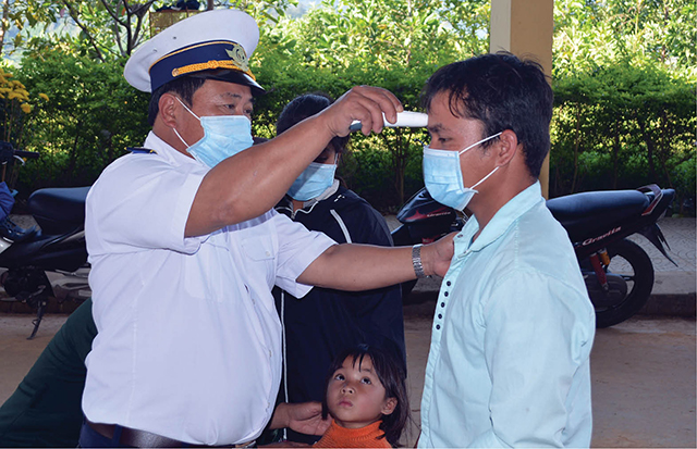 Trung tá Hồ Văn Hà, Đồn trưởng Đồn Biên phòng Nhâm, BĐBP Thừa Thiên Huế cho biết: “Những ngày qua, đơn vị đã cử cán bộ xuống địa bàn, phối hợp với nhà trường tuyên truyền cho các em học sinh; đến từng hộ dân tuyên truyền về tác hại của dịch viêm đường hô hấp cấp, tổ chức in tờ rơi, ảnh phác đồ phòng chống dịch COVID-19 nhằm nâng cao cảnh giác, thực hiện các biện pháp phòng ngừa dịch bệnh và tự biết cách bảo vệ sức khỏe cho bản thân, gia đình; hướng dẫn người dân đeo khẩu trang đúng cách, cấp phát miễn phí khẩu trang cho người dân biên giới…”.