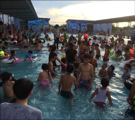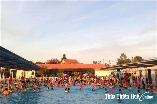 Nhiều người đến Trung tâm bơi lội xã Phong Hiền để tập bơi