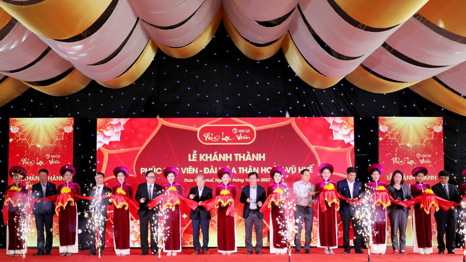 Lãnh đạo tỉnh và chủ đầu tư cắt băng khánh thành Phúc Lạc Viên - Đài hóa thân hoàn vũ Huế