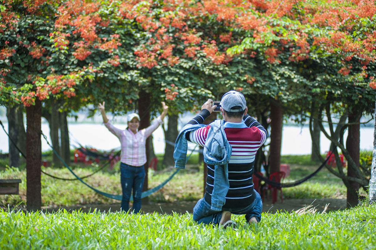 Phượng rừng vừa cho hoa vừa cho bóng mát, tạo nên cảnh quan thơ mộng cho công viên bên sông Hương