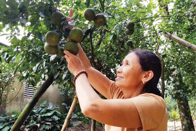 Bà Đặng Thị Thân nâng niu những trái quýt quý