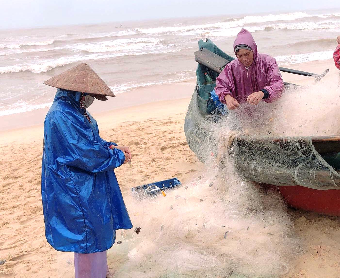 Vừa gỡ lưới, vừa thở phào nhẹ nhõm cho một chuyến biển an toàn, ngư dân Trần Xuân Toản (50 tuổi, Phú Diên) nửa đùa nửa thật: "Phải lực lưỡng như tôi mới ra biển với thời tiết này chứ công việc đi biển ngày mưa, rét cực lắm. Công việc thu lưới trên vất vả vô cùng, lại tốn sức. Trời rét kèm thêm mưa càng buốt, cả người lạnh tê tái, nhiều lúc phải gồng mình hết sức mới lôi được từng đoạn lưới lên".