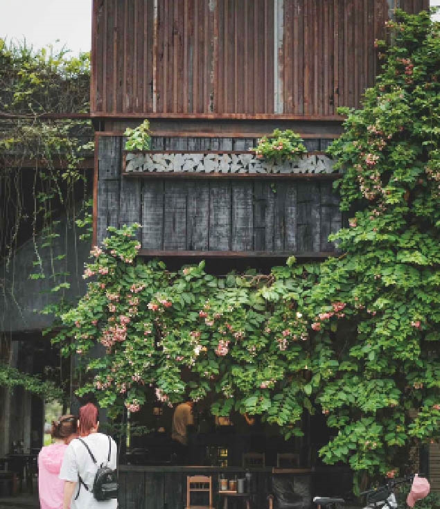 Một ngày cuối tuần, tôi cùng vài người bạn “lạc bước” đến với T Roaster cafe. Đây là một quán café mộc mạc, trang trí rất tối giản, nhưng mang lại cảm giác ấm cúng. Tôi đặc biệt ấn tượng bởi dàn hoa sử quân tử mọc leo lên đến tầng 3, điểm xuyết thêm những chùm hoa trắng, đỏ đan xen, tạo nên chiếc rèm che nắng, che mưa cho không gian bên trong nhà, bất giác tôi thốt lên: “Dàn cây leo đẹp thật!”. KTS. Trương Văn Dương, Công ty HS House bật cười: “Đấy là dàn cây sử quân tử, loài cây có sức sống mạnh mẽ, tán xanh to, hoa trắng – đỏ nở thành chùm, rất thích hợp để trồng leo thành dàn bởi tạo không gian xanh mát, dễ chịu cho căn nhà”.