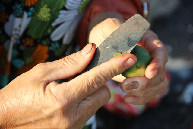 Gọt cau mời khách. Ảnh: Hữu Phúc