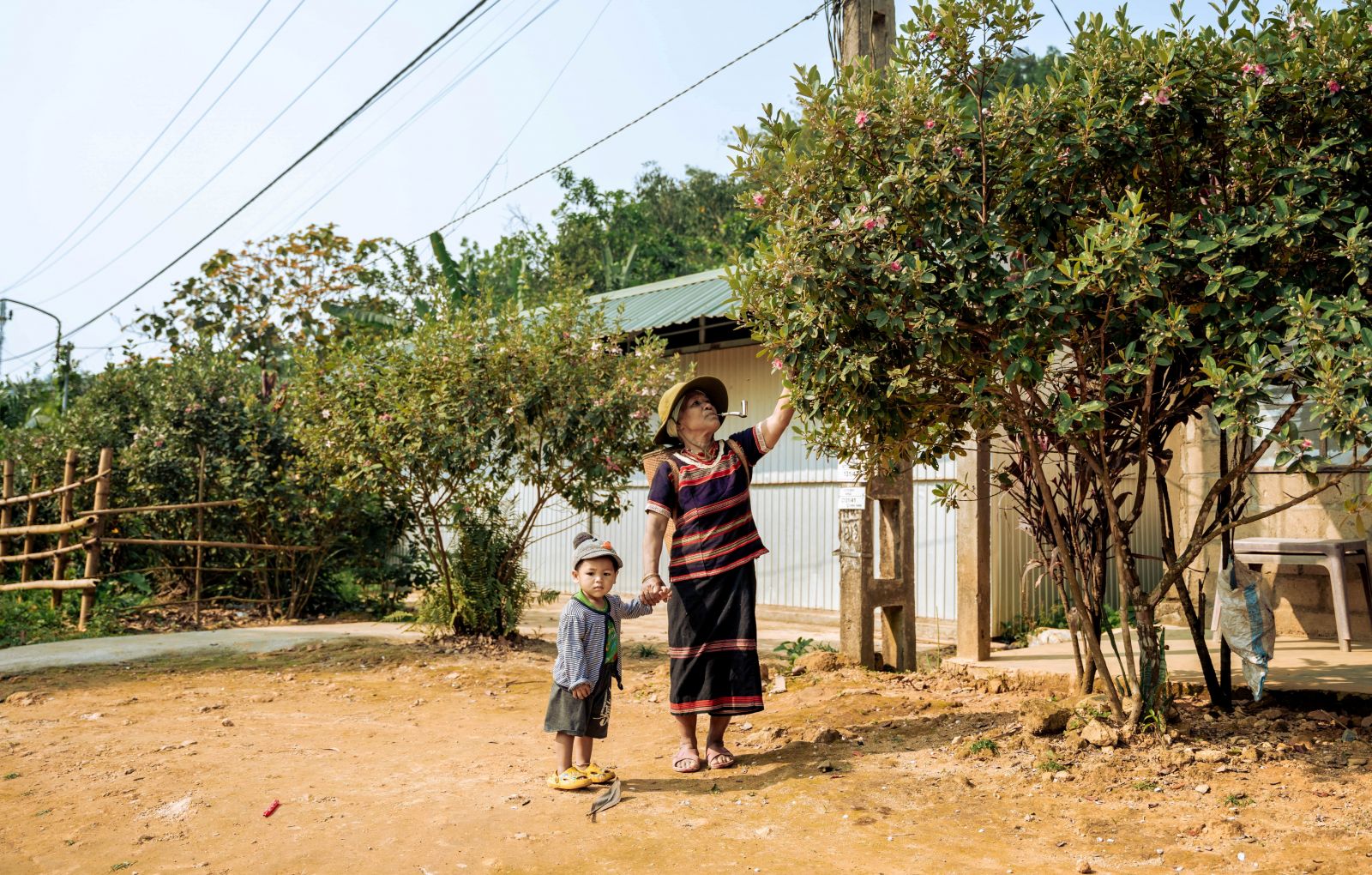 Những cây thuốc lá nở hoa ven hàng rào tre. Thị trấn A Lưới đang phát động người dân chọn hoa bản địa làm đẹp cho đường vào các bản làng