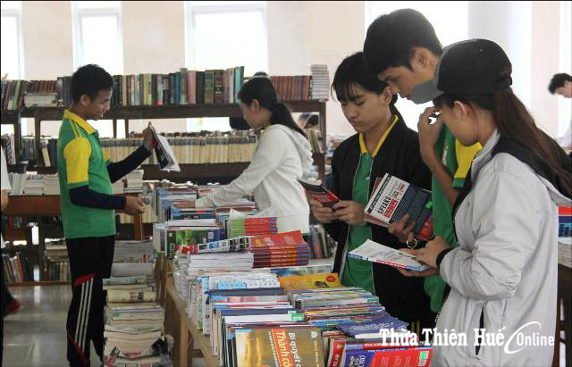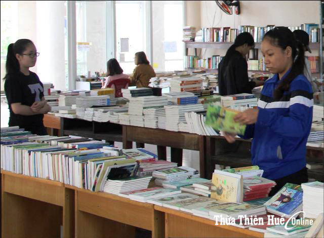 Bạn đọc lựa chọn sách tại quầy Sách cũ Huế