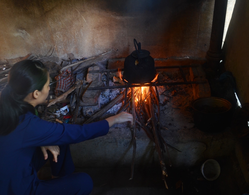 Để hái lá, mệ Lệ phải đạp xe đến dãy đồi cách nhà chừng 4km